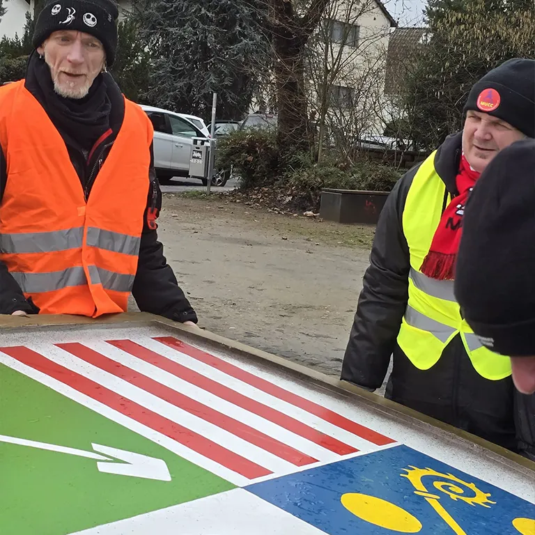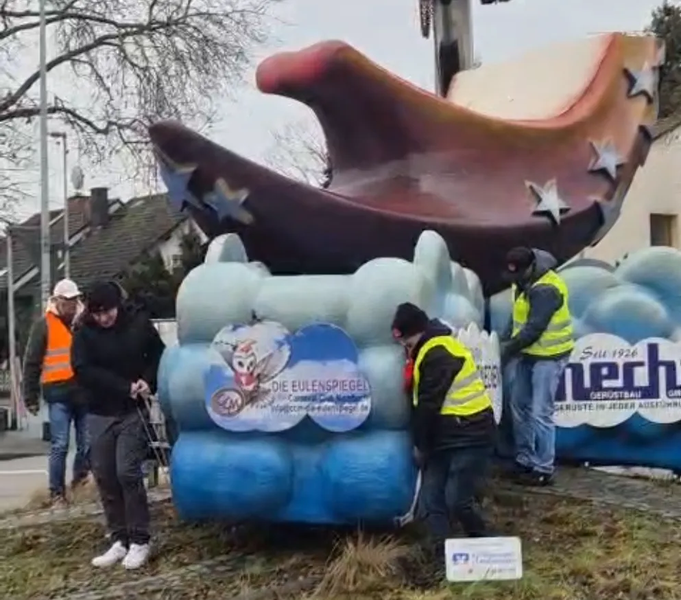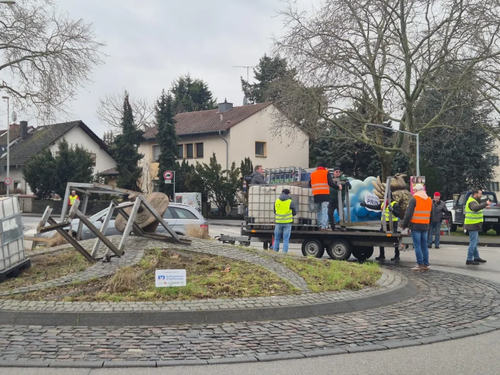 22.02.2026: Der Mombacher Fastnachtshalbmond auf dem Kreisel in der Hauptstraße wurde wieder abgebaut. Die Mitglieder des CCM/Die Eulenspiegel demontierten das Symbol gemeinsam mit tatkräftiger Unterstützung des MUCC e.V. und verstauten es sicher. So ist gewährleistet, dass der Halbmond auch in der kommenden Kampagne wieder an seinem angestammten Platz stehen und die Närrinnen und Narren erfreuen kann.