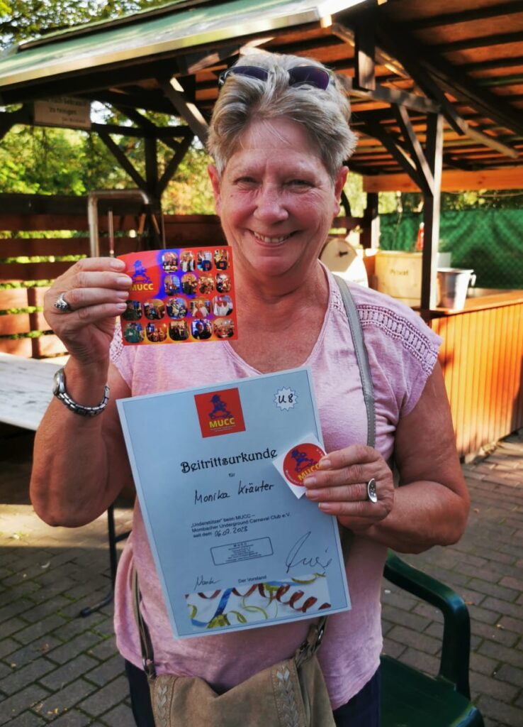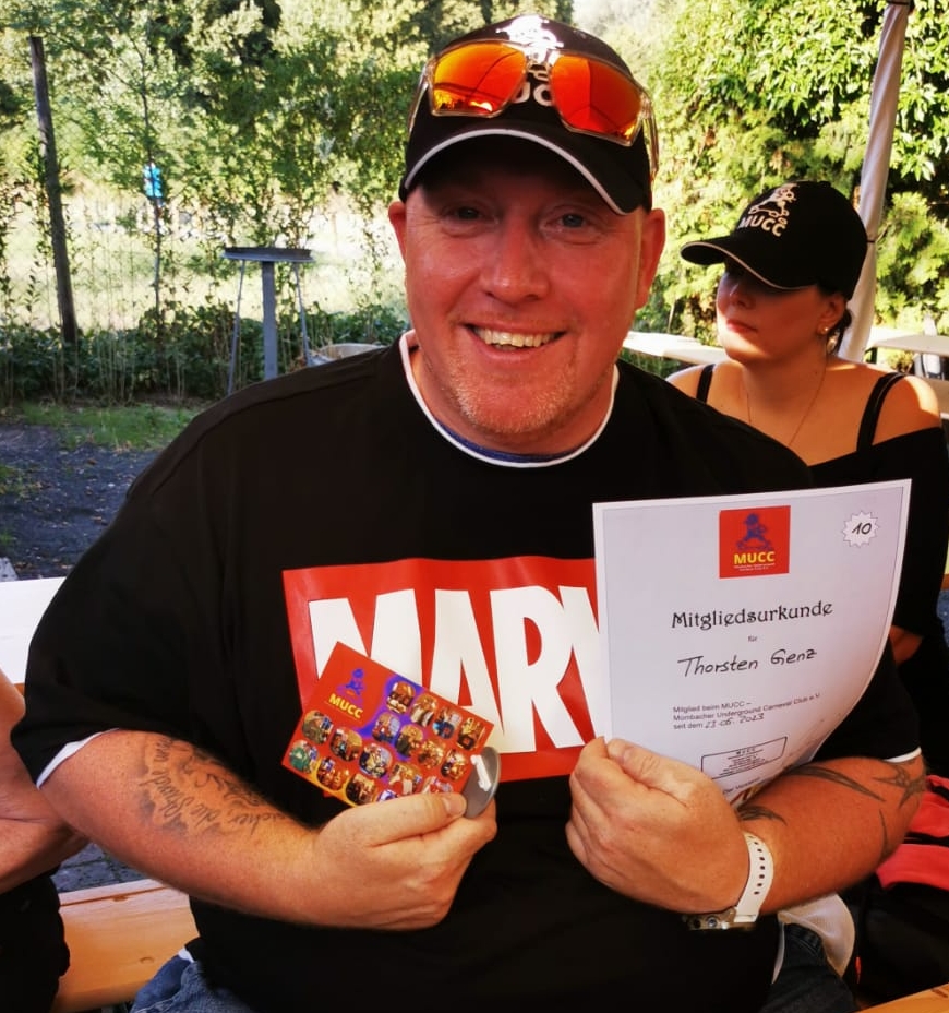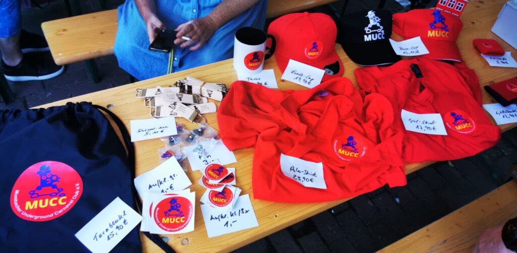 11.08.2023: MUCC-Stammtisch im Biergarten der Maletengarde an der Bruchspitze mit offizieller Übergabe der ersten Mitglieds- bzw. Understützer-Urkunden, Vorstellung unserer neuen MUCC-Banner und Verkauf der ersten MUCC-Fanartikel.