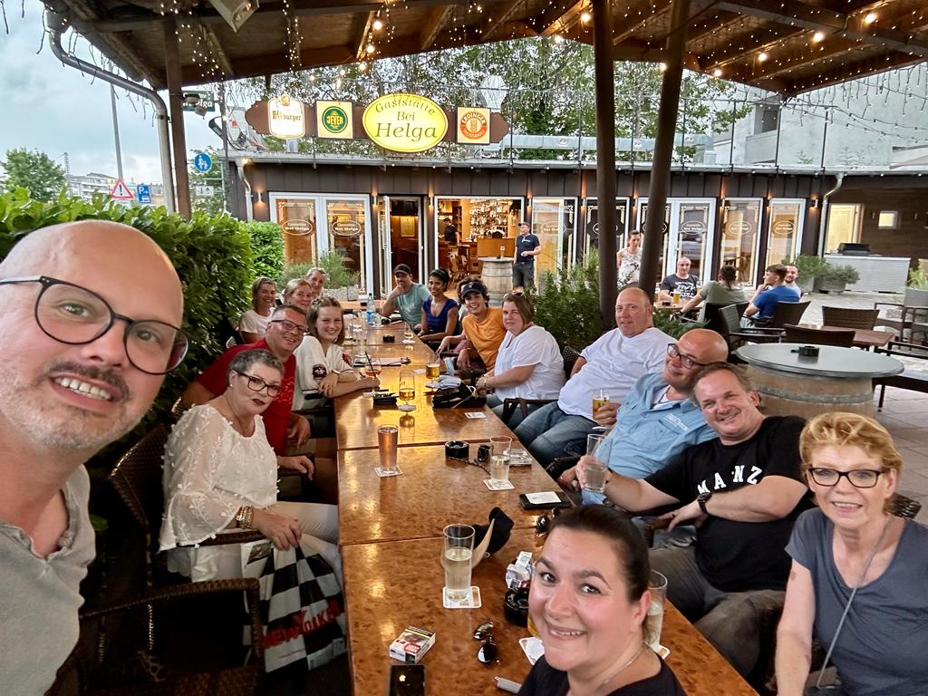 11.07.2023: MUCC-Stammtisch „Bei Helga“ in der Mombacher Straße mit 19 MUCCerinnen und MUCCern.