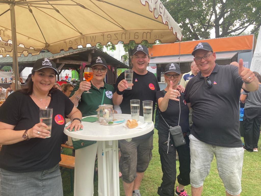 19.08.2023: Auf dem Mombacher Rheinuferfest treffen sich bei bestem Sommerwetter, toller Livemusik und vielen Randaktivitäten über 20 MUCCerinnen, MUCCer und MUCCinis.