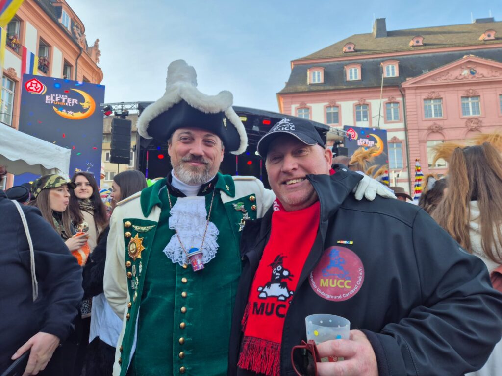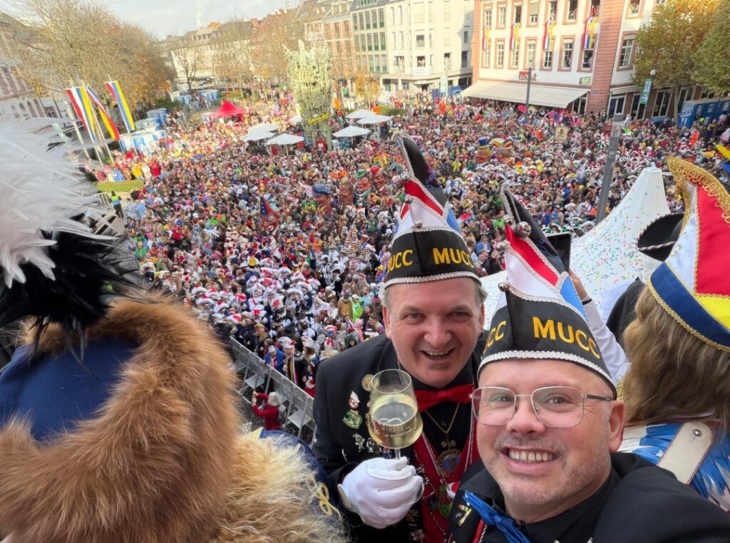 11.11.2025: Am Schillerplatz in Mainz wurde um 11:11 Uhr das närrische Grundgesetz verlesen. Der MUCC entsandte natürlich eine offizielle Abordnung. Außerdem durften das erste Mal unser OBBER-MUCC und unser VIZE-MUCC als Vertreter des MUCC im Osteiner Hof auf der Bel Étage bei der Zeremonie live hautnah dabei sein. Danach wurde die Stadt unsicher gemacht.