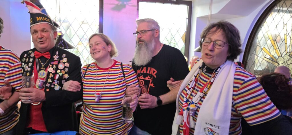 15.11.2025: Besuch einer MUCC-Abordnung des traditionellen Schnitzelabends des „CCM – Die Eulenspiegel“ und Auftritte unserer MUCC-Aktiven Stefan Schmidt und „Der Meenzer Wingertsknorze“ im Gemeindezentrum St. Nikolaus! Danach ging es noch weiter zu einem „Absacker“ bei unseren Freunden des „MCG – Maletengarde 1953 e. V.“.