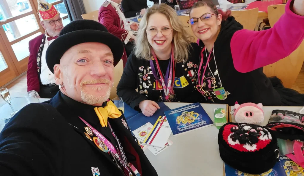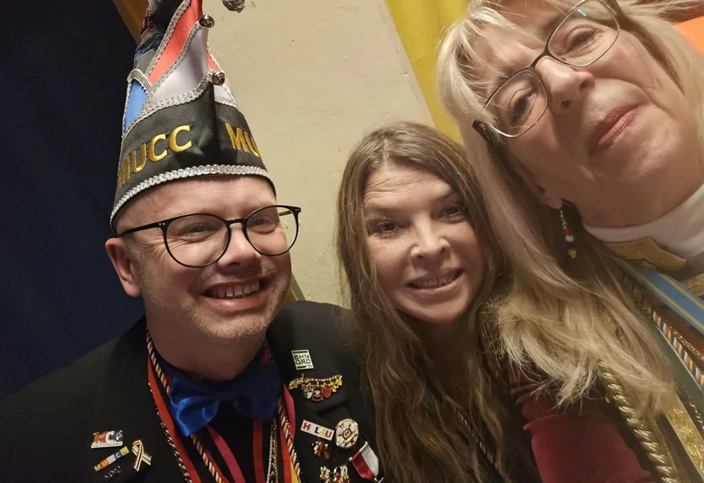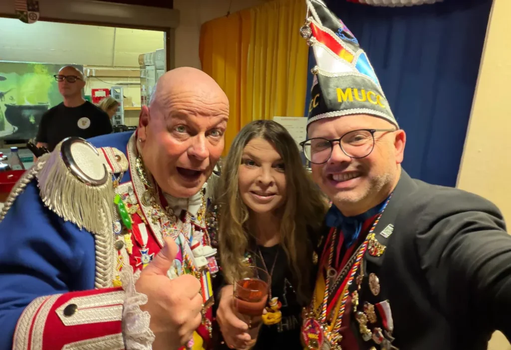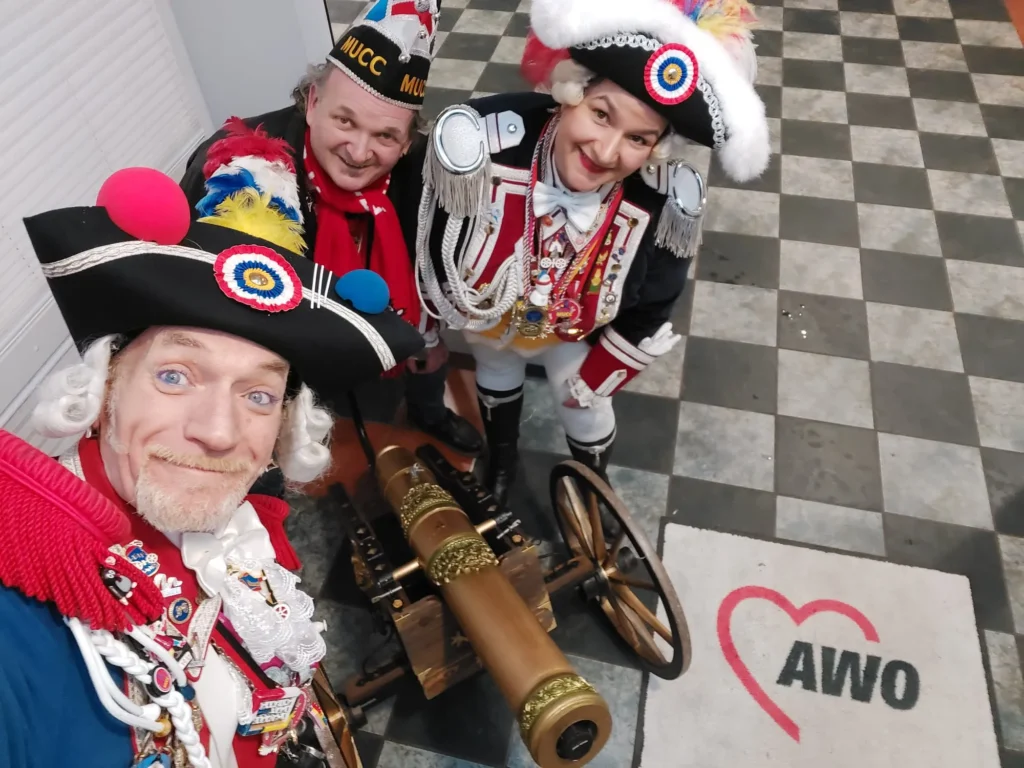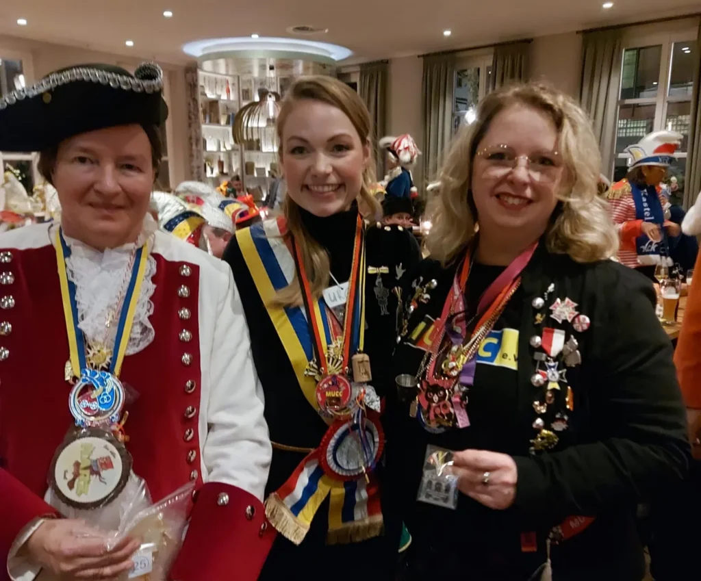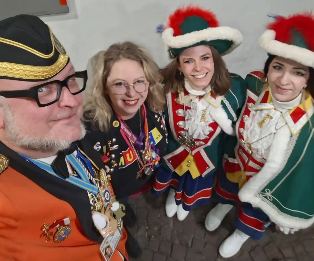 27.01.2026: Ordensempfang bei der unsichtbaren Römergarde mit dem Kritzel-MUCC Susanne Moll und dem Technik-Beauftragten David Deichmann bei Wilma Wunder im Cafe am Ballplatz.