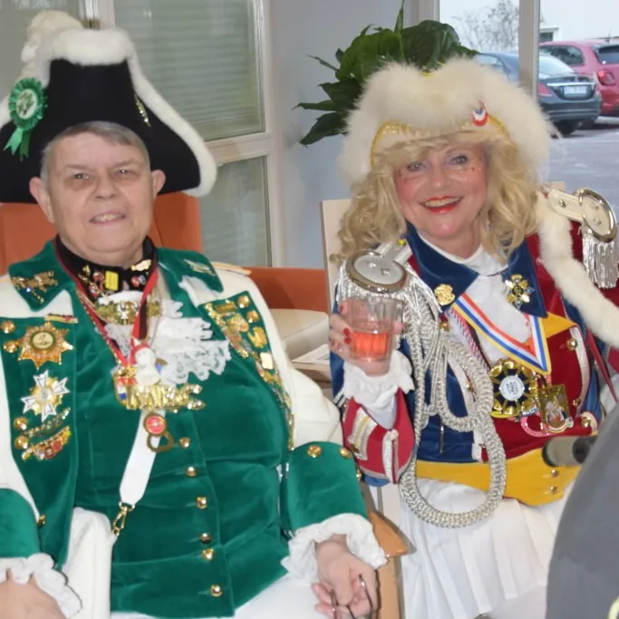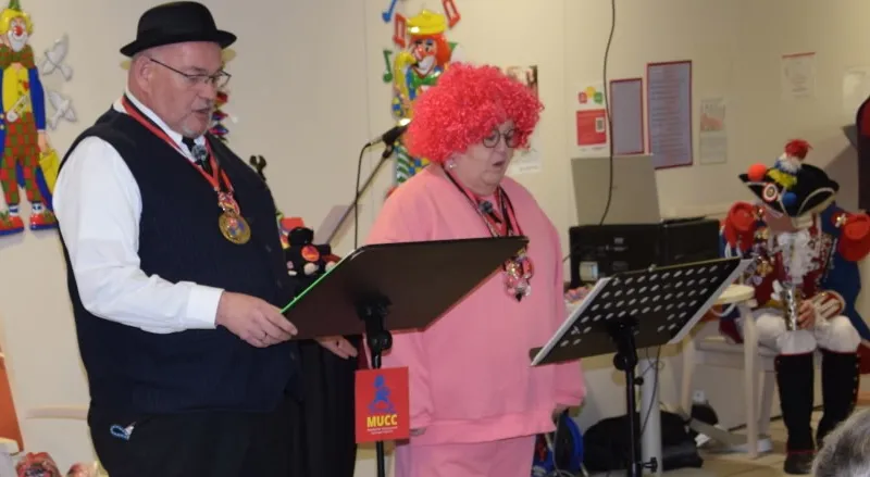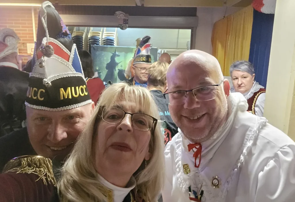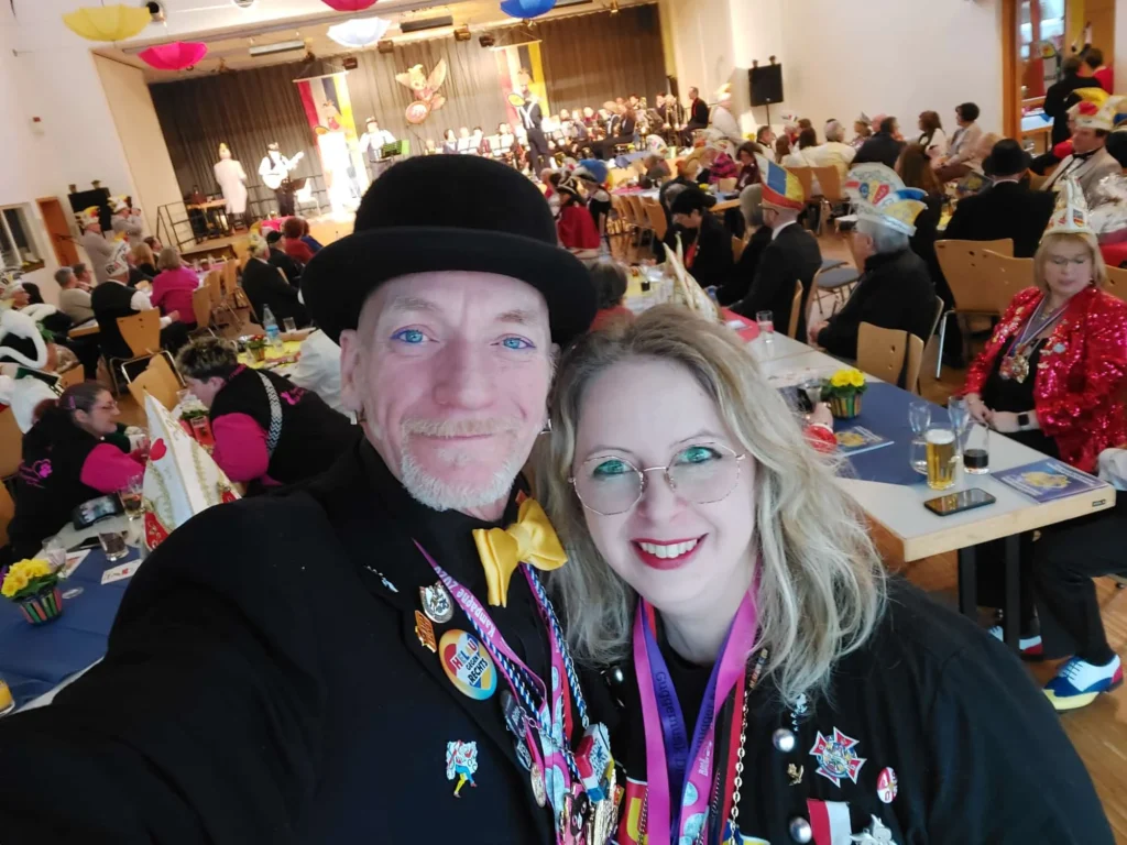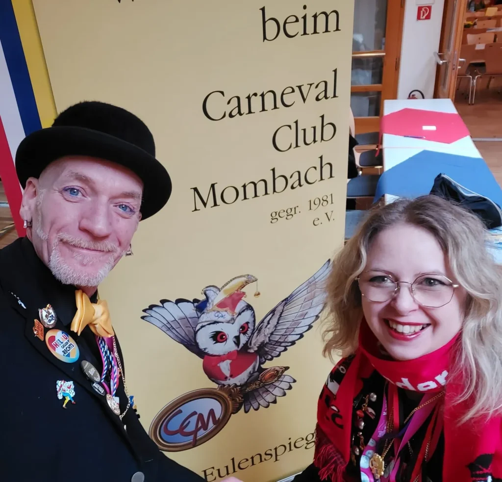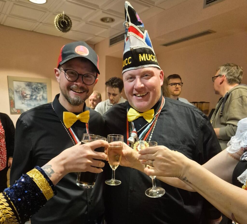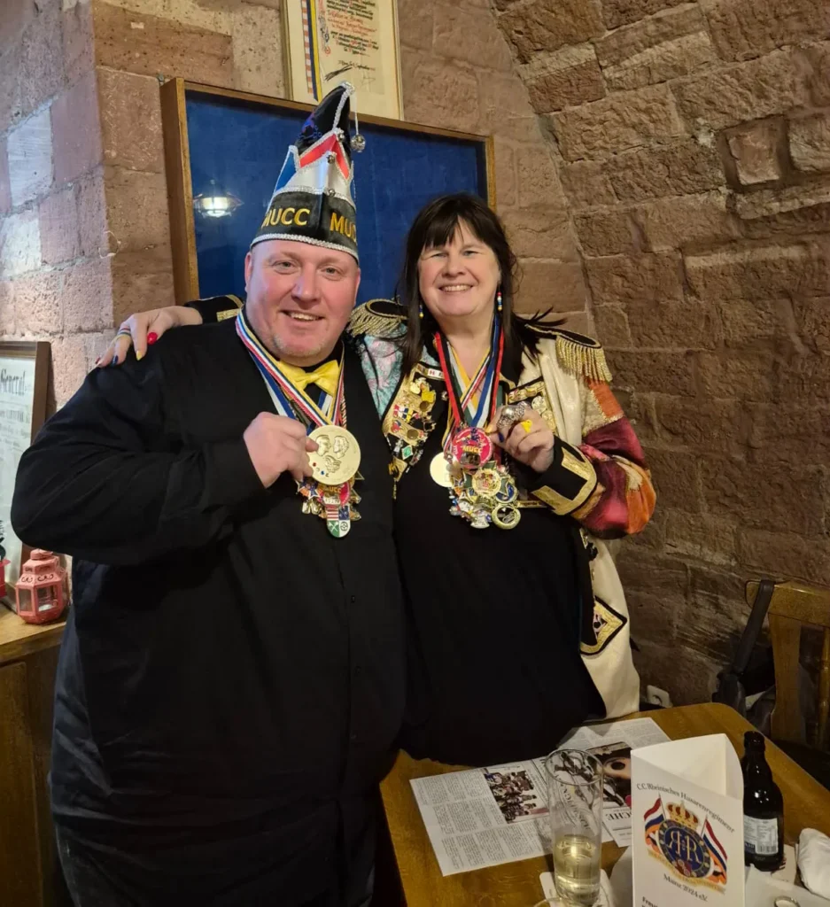 25.01.2026: Sektempfang des CCM – Die Eulenspiegel im Bürgerhaus in Budenheim mit dem Kritzel-MUCC Susanne Moll und dem Technik-Beauftragten David Deichmann.