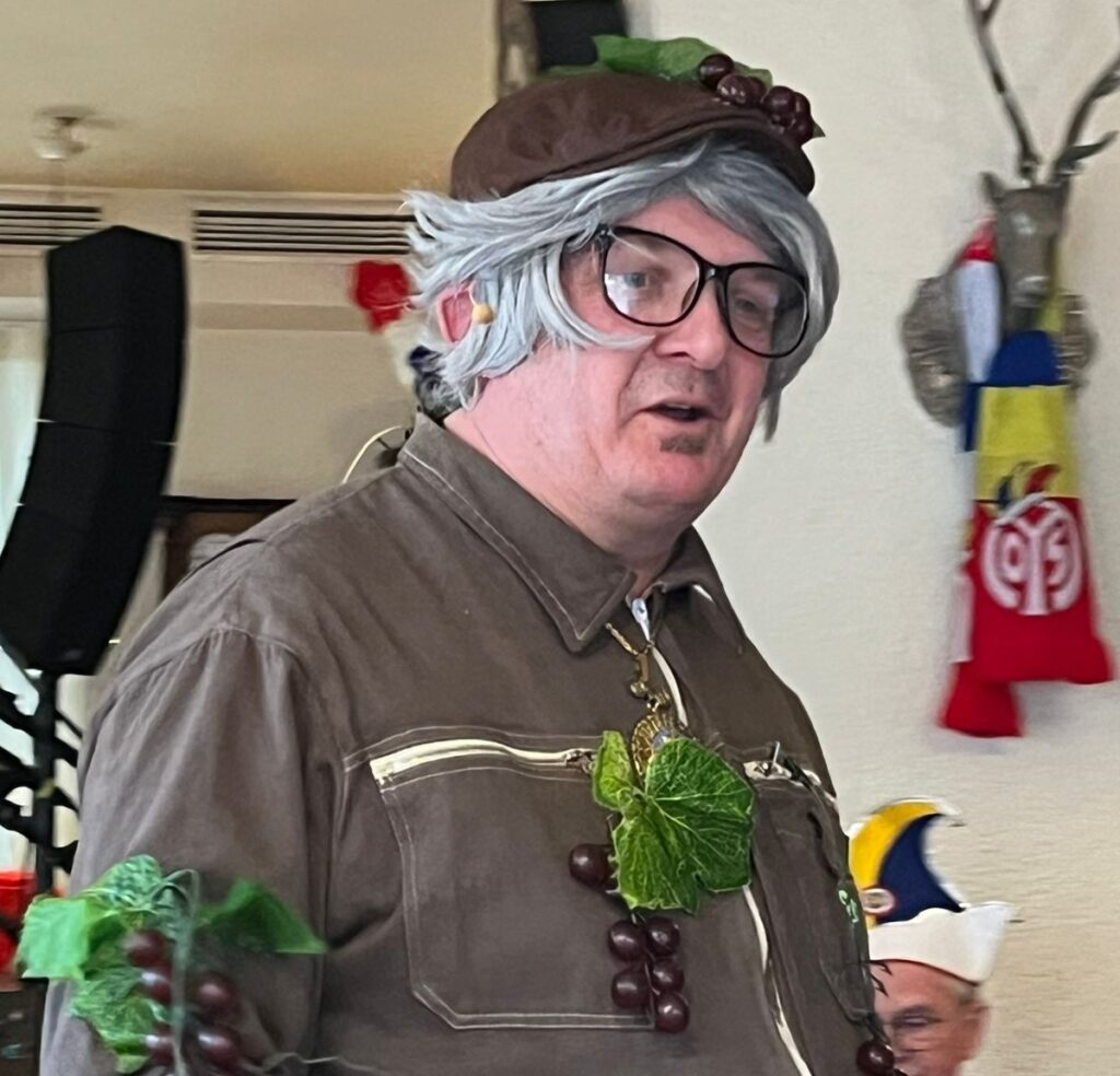 Ob auf der Bühne, in der Kneipe, auf allen MUCC-Sitzungen, im Weinhaus oder beim Mitsingen im Wohnzimmer: Seine Lieder sind ein Hoch auf den Wein, das Leben und die Fastnacht! 🎭💃
